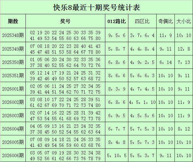 福彩状况8第2026006期开奖归来:03 05 07 09 19 28 30 32 34 38 49 52 56 61 62 66 73 76 78 79,其中奖号012路比为5:10:5,四区比为5:5:3:7,奇偶比为9:11,大小比为10:10。
