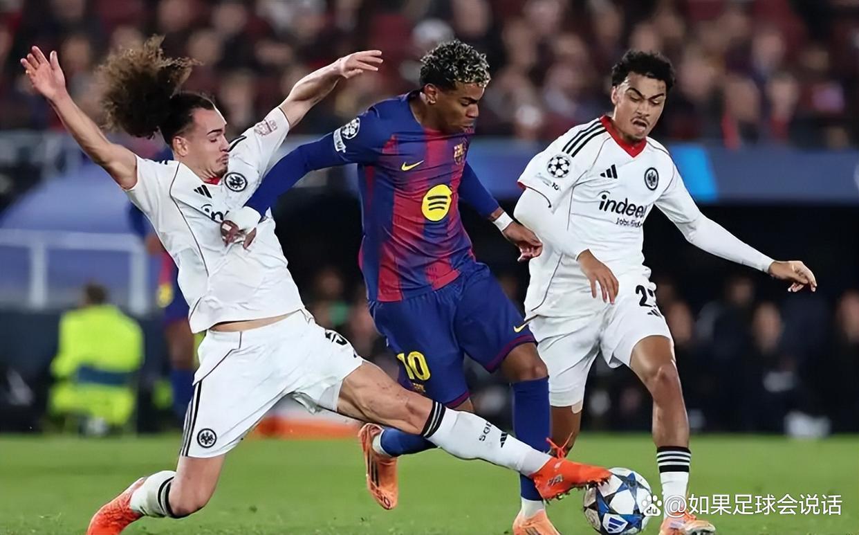 另一边,巴萨主场对法兰克福,踢得那叫一个揪心。上半场巴萨控球率78%,数据全面碾压,为止反而被法兰克福偷了一个。下半场孔德头球梅开二度,帮巴萨反超比分,但球队举座推崇照旧让东谈主理把汗。现时巴萨积10分排第15,终末两场必须全胜才有望冲前八;法兰克福仅4分排第30,附加赛但愿迷茫得像中彩票。