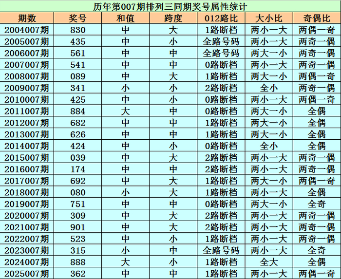 历史上第2026007期罗列三已开出22期奖号了,积年同时奖号别离为:830、435、561、541、089、341、425、884、682、626、424、039、174、692、080、751、309、901、523、315、888、362,详备统计见下表: