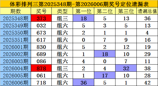 开奖回来:成列三第2026006期奖号为:718,诸君号码遗漏值分袂为36、5、1,遗漏总值为42。