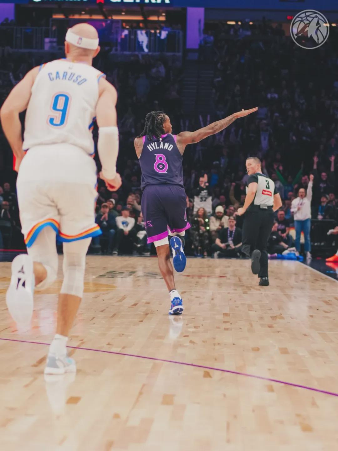 丛林狼替补海兰德理解出色,上半场三分5中3砍下9分1篮板2助攻1盖帽,正负值+6。第三节启动,迪温琴佐和海兰德外线开炮,两队打起对攻战。丛林狼单节35-34又追回了1分,三节打完,雷霆85-83逾越2分,SGA单节11分进账。