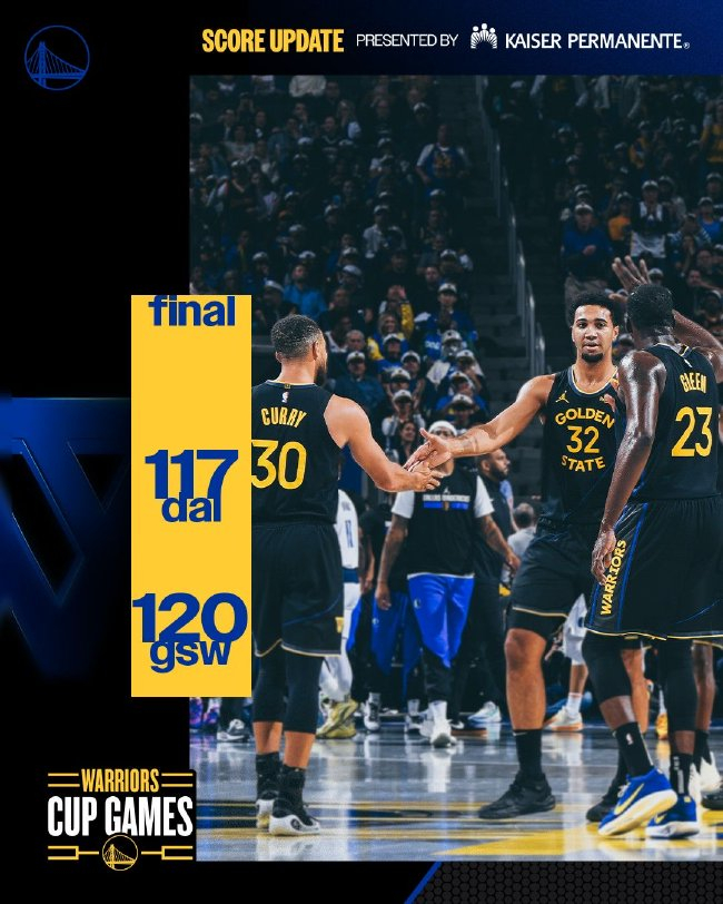 豪杰(9-2):库里37分6篮板9助攻、库明加16分5篮板、梅尔顿14分4篮板4助攻、希尔德14分、格林11分7篮板6助攻3抢断2盖帽、维金斯8分3篮板4助攻、卢尼5分11篮板
