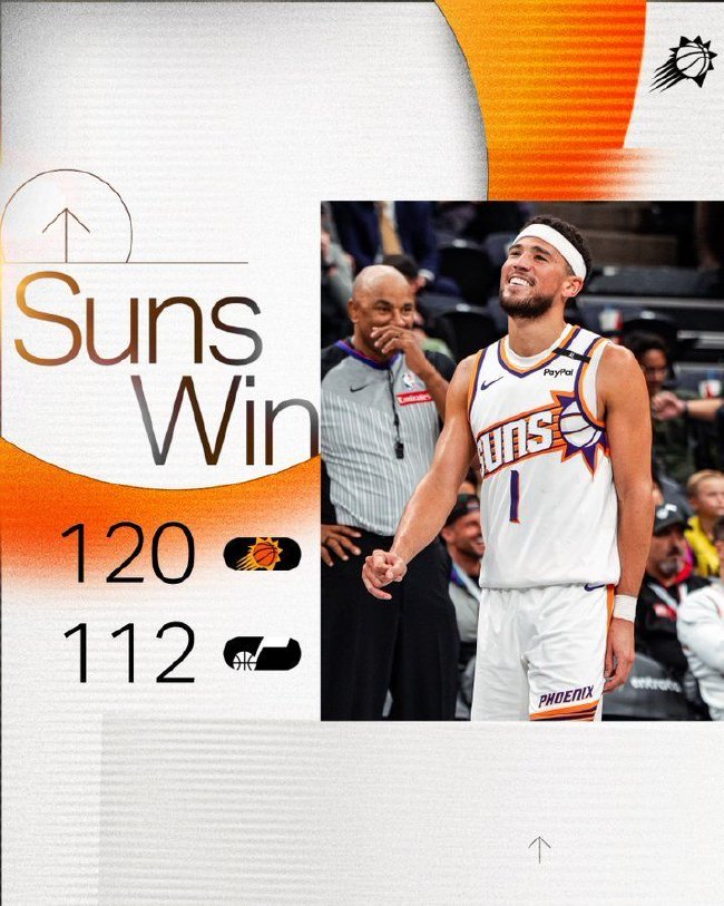 布克小节射中4记三分轰下15分率队取胜,太阳格外雷霆重回西部第一。