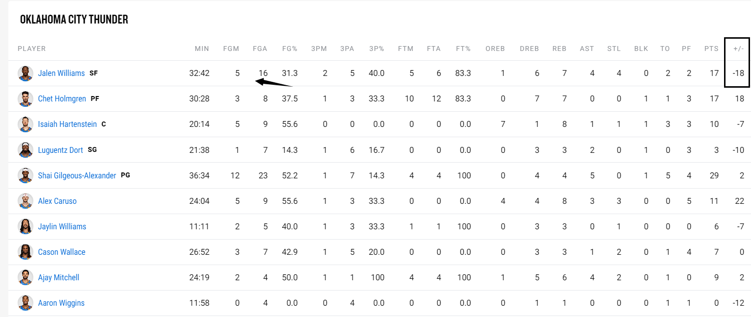杰威在场-18雷霆最差,多尔特7中1(在场-10),亚历山大在场+2,霍姆格伦8中3(在场+18),杰威才是先发之中在场推崇最差的阿谁。
