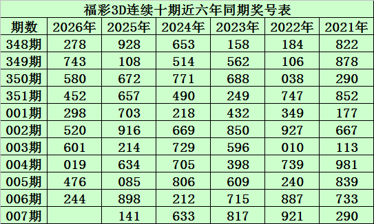 陈青峰福彩3D第2026007期推选: