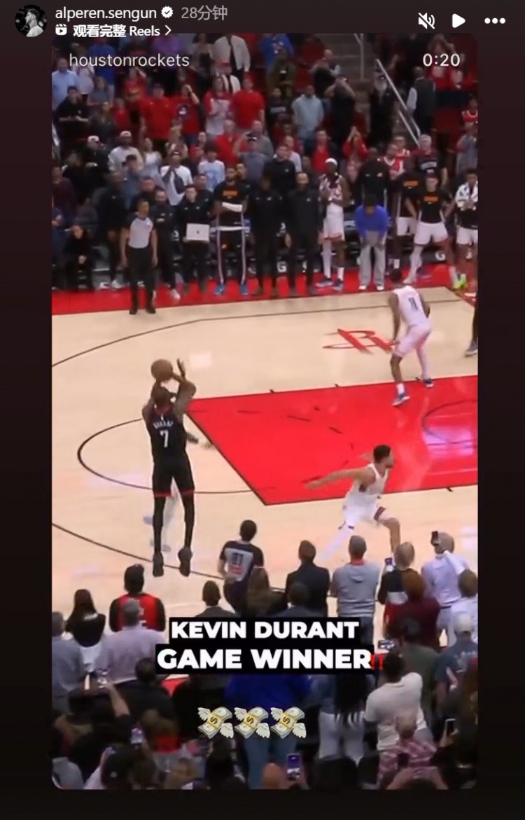 赛后,因伤缺阵的申京在INS转发了杜兰特的海报和三分绝杀球,并批驳说念:“💸💸💸。”