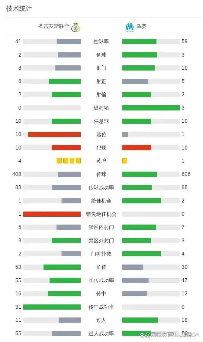 下半场,马赛保抓高强度,第58分钟格林伍德又接队友传球进球,比分反超。圣吉罗斯麇集不宁愿,第71分钟哈利利远射破门,又追成平局。比赛干与尖锐化阶段,裁判两次越位判罚远隔取消了圣吉罗斯和马赛的进球,保抓了比赛的公谈性。两边球员也变得更防范,寻找契机但幸免犯规。