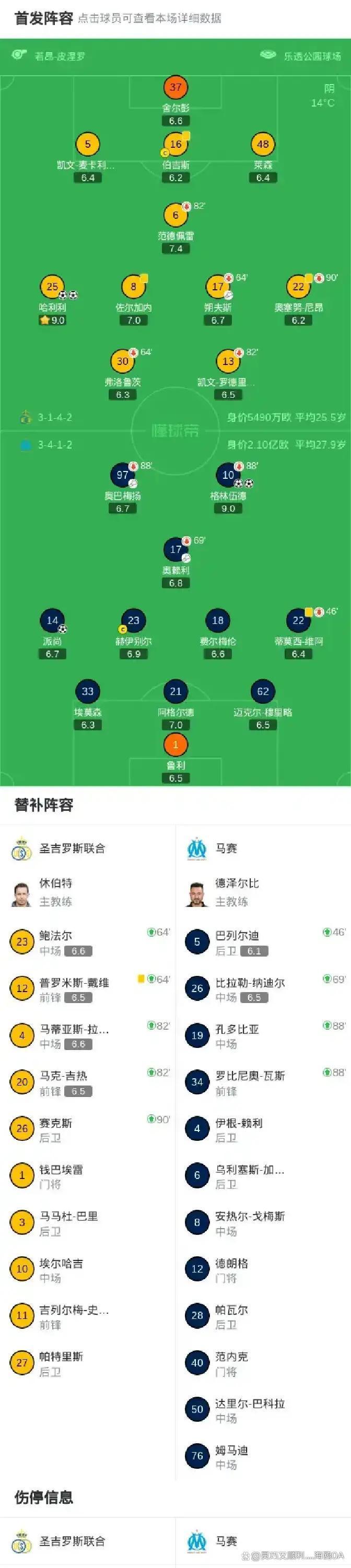 整场比赛,马赛的逆转靠的是团队协和谐临场调整,格林伍德阐明拉风,奥巴梅扬助攻关节。圣吉罗斯麇集天然输了,但哈利利阐明依旧出色,他的两个进球皆特地关节。两边屡次攻防调养和守门员的几次关节扑救,让比赛一直急切刺激。