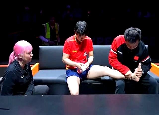 孙颖莎在女单半决赛中脚踝受伤,却依旧带伤出战混双决赛,最终失利。