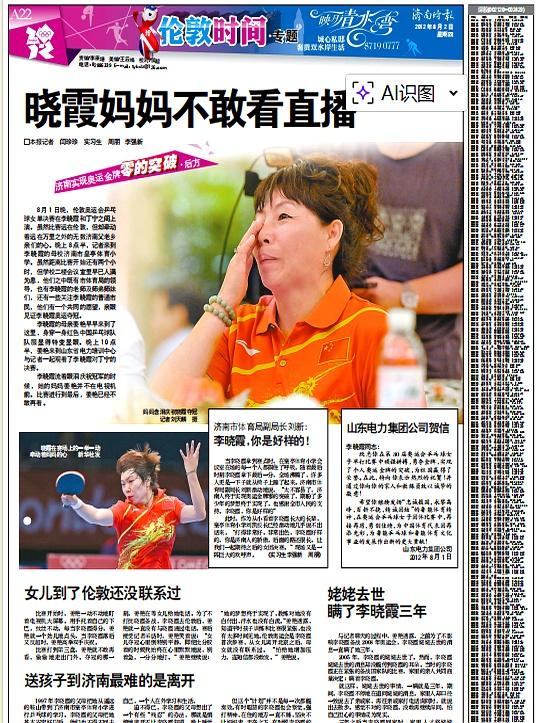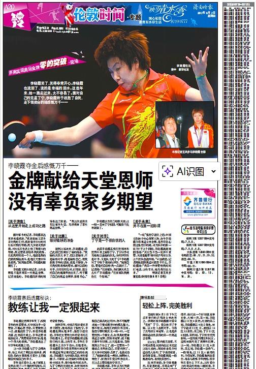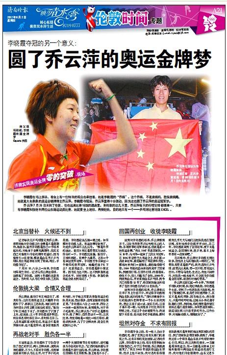 直到2012年8月1日,李晓霞用拍子把这枚“济南第一金”实打实拍进了历史。